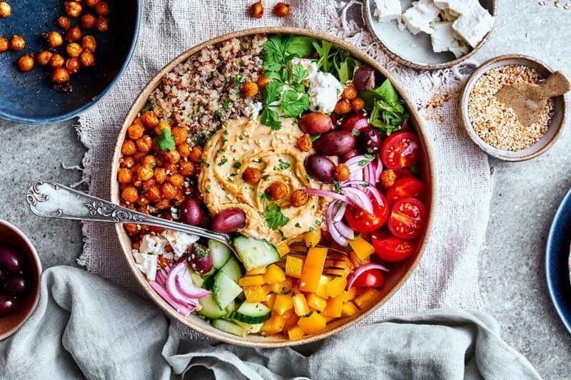 | Lunch | Chickpea salads, veggie wraps, lentil soups |