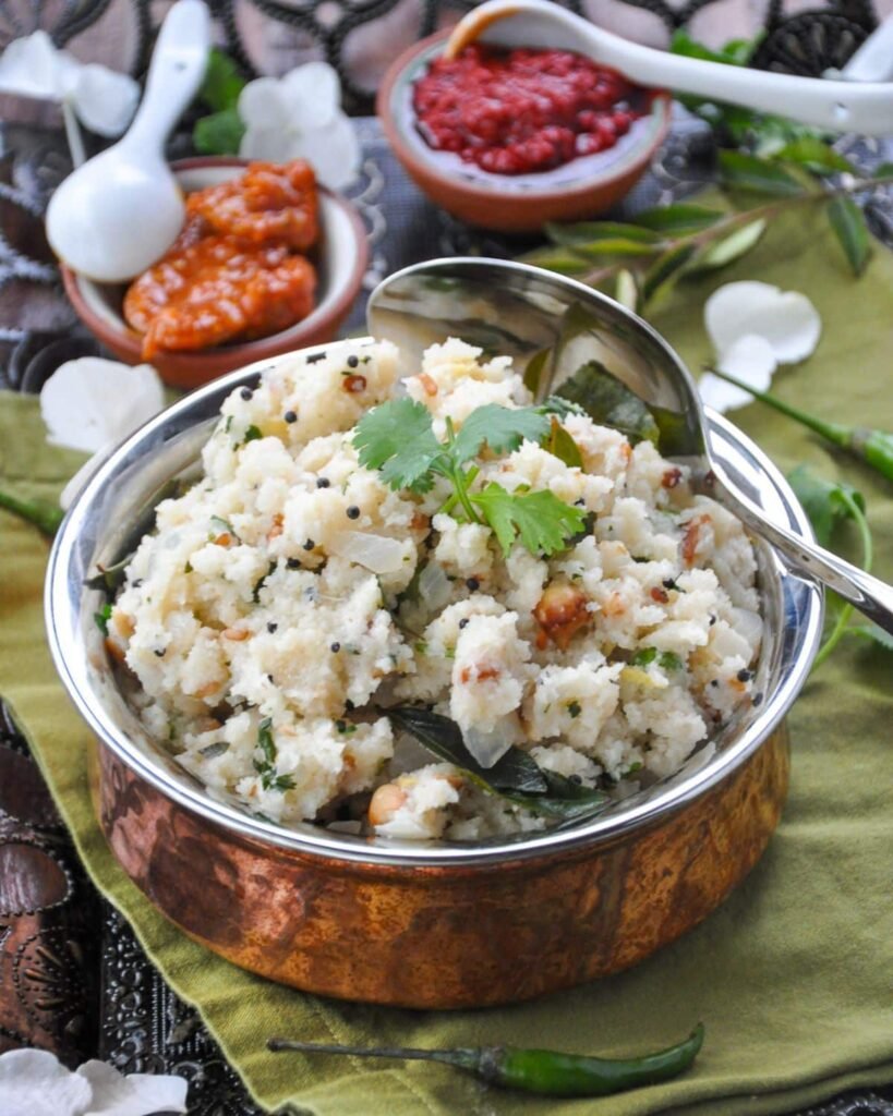 - Upma with Coconut Chutney – “Savory semolina porridge served with creamy coconut dip.”