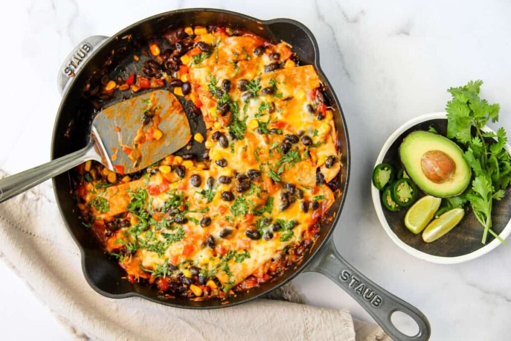 The Veg Enchiladas with a Desi Touch showcase how two rich culinary traditions can merge beautifully on a plate. By following the 7-step recipe—preparing tortillas, making sauce, cooking filling, assembling, layering, baking, and garnishing—you can craft a dish that is comforting, nutritious, and festive.