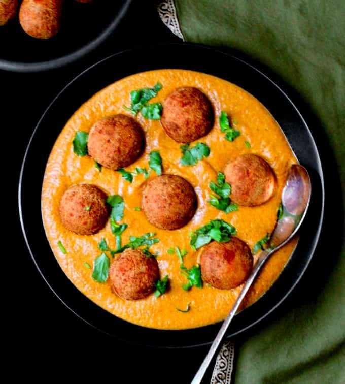 Some recipes (like Vegetable Malai Kofta Curry – non fried) skip deep frying by baking or pan roasting.