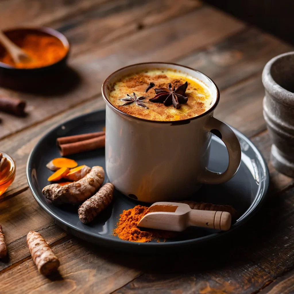 - Golden Milk: Turmeric with warm plant-based milk, black pepper, and honey.