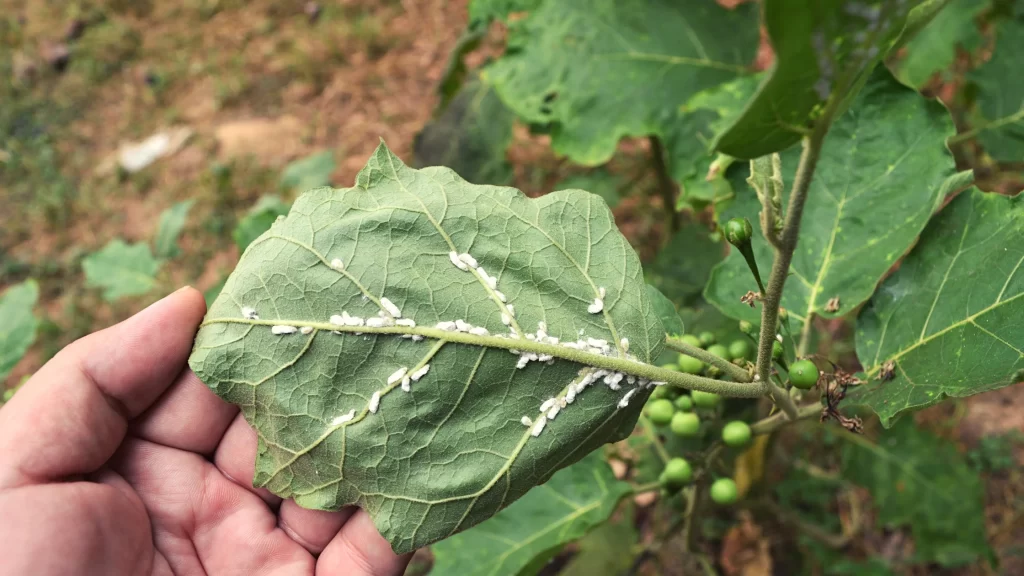 - Whiteflies – Tiny, white-winged insects that cluster on the undersides of leaves, sucking plant sap.