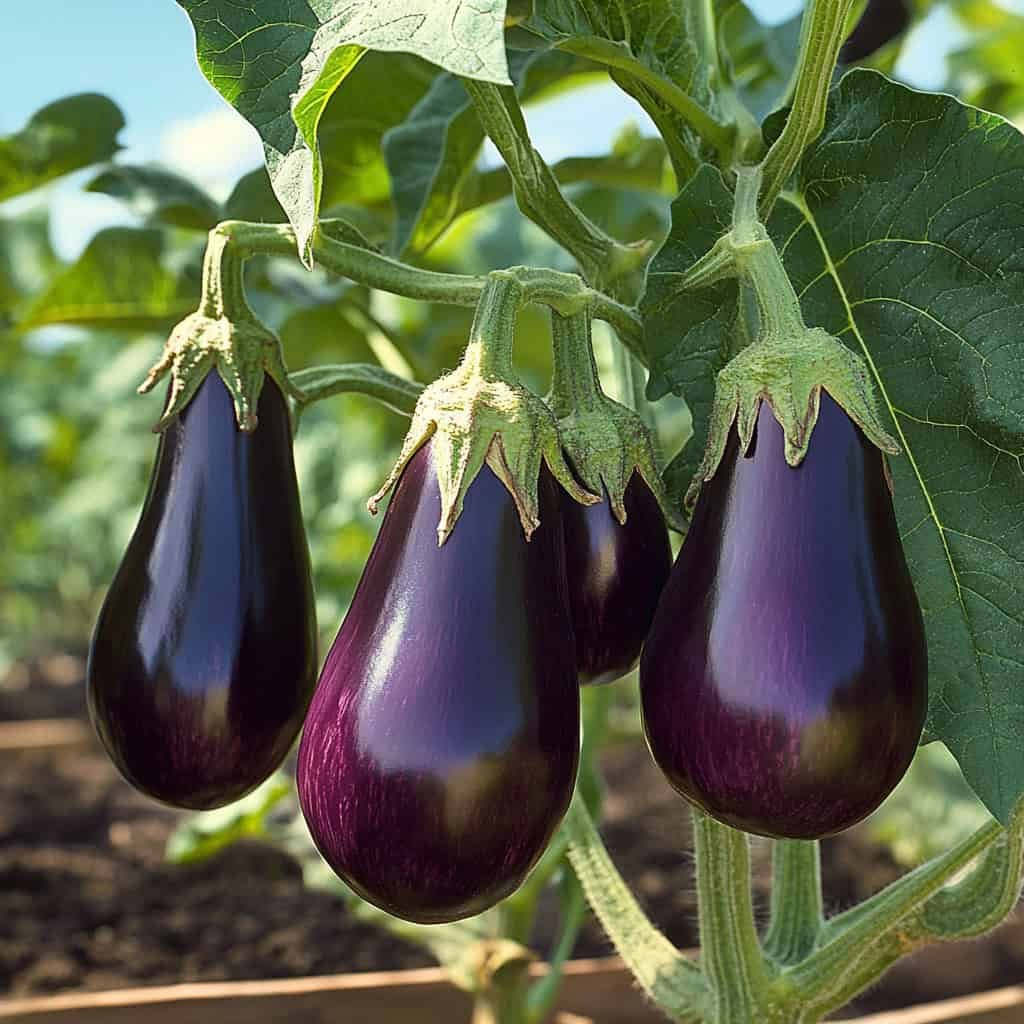 Freshly harvested eggplants are tender, flavorful, and ideal for a variety of dishes.