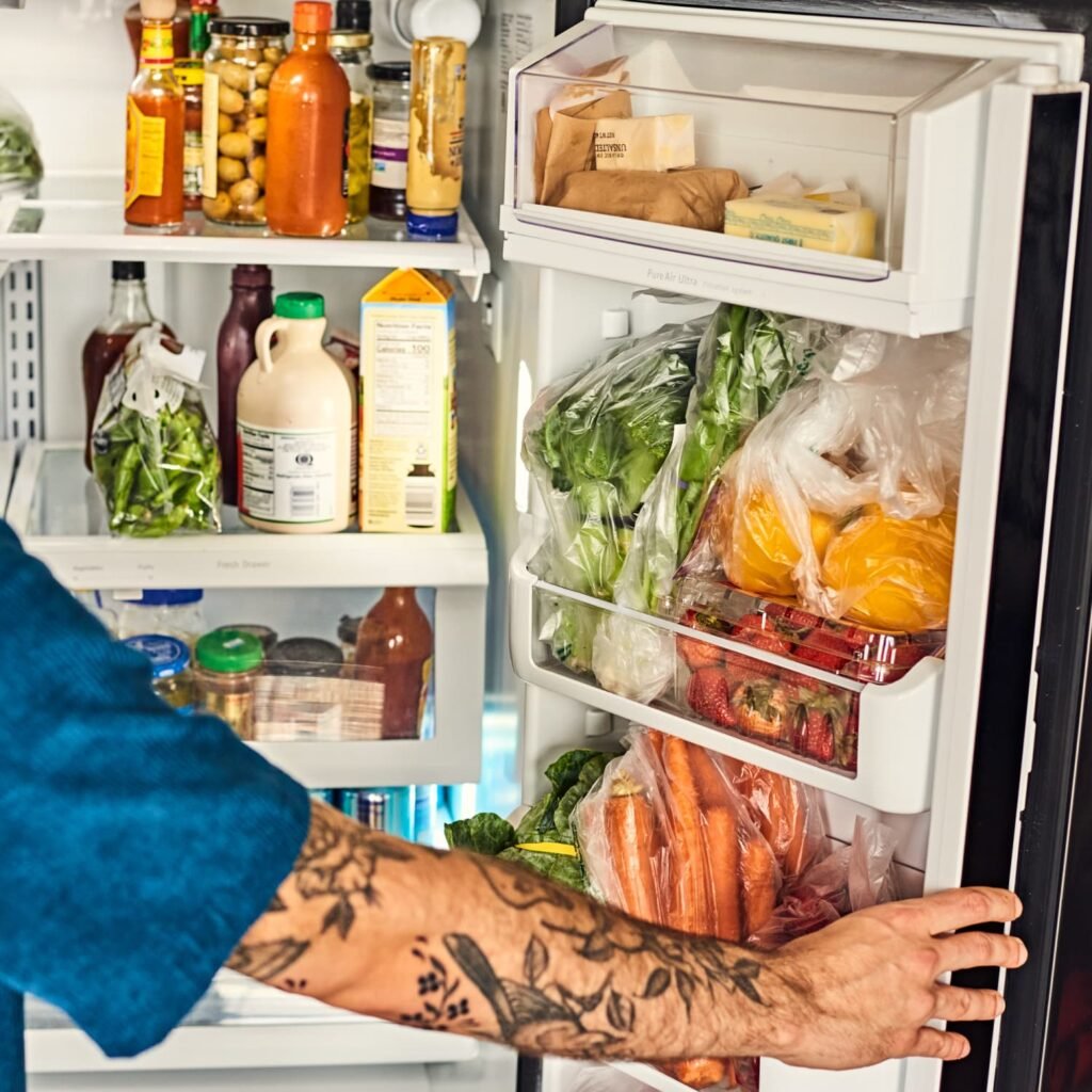 • Use perforated plastic bags, glass containers, or reusable produce bags.