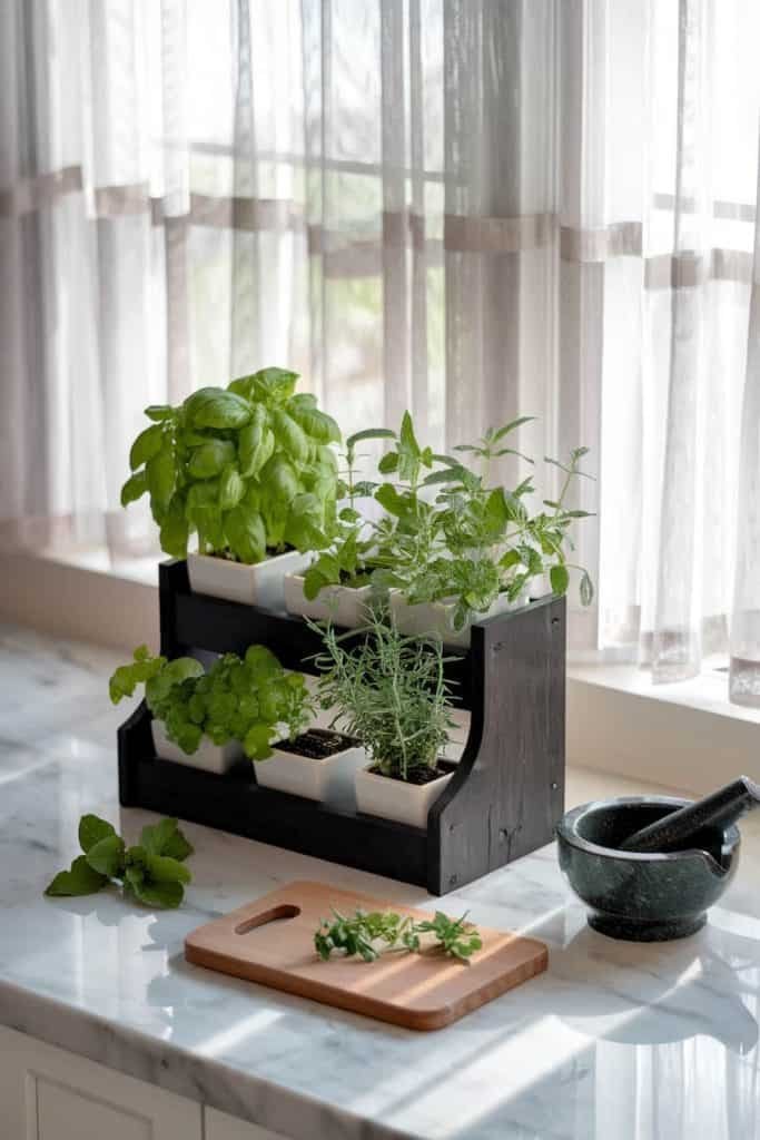 2. Accessibility: Fresh herbs are within arm’s reach while cooking.