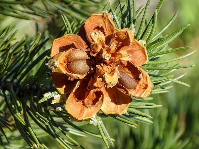Pinyon pines are wind-pollinated and may take several years to produce nuts: