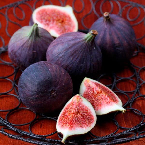 • Fruit: Medium to large figs with dark purple-black skin and pink, juicy flesh.