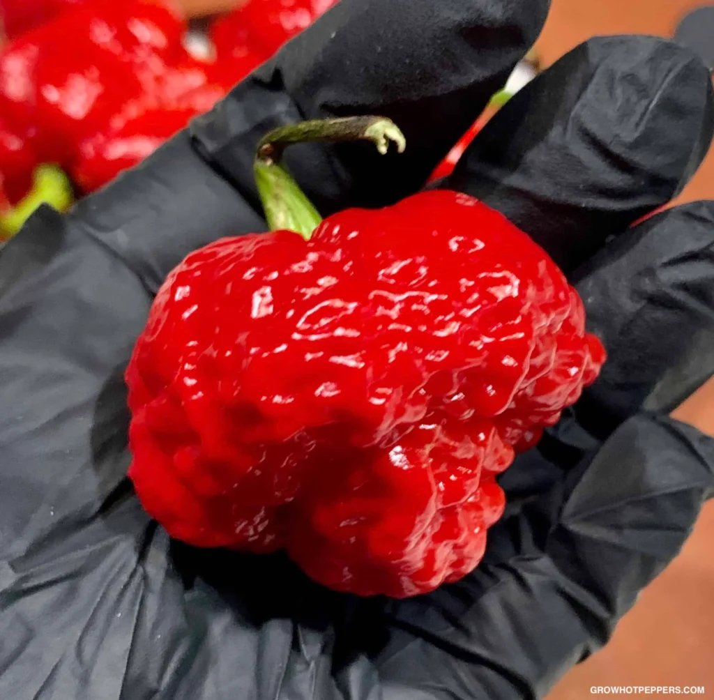 Always wear gloves when handling them, avoid touching your face, and warn anyone who might sample them. A single Reaper can be over 2 million Scoville units — more than enough to make a grown man sweat bullets.